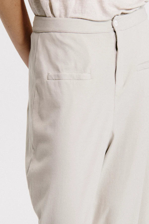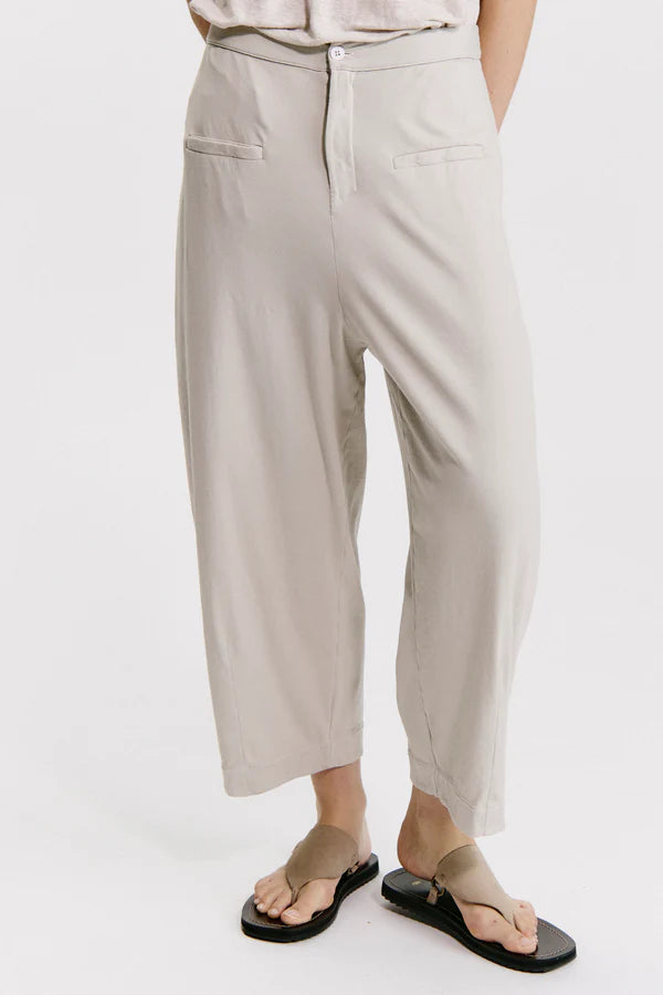 Comfort fit trousers in stretch cotton jersey, garment dyed. Zip and button opening, horizontal fake welt pockets.