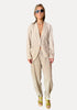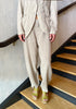 Stretch fabric comfort fit trousers with diagonal micro design. Fastened with a zip and a button. Belt loops on the waist, slant pockets and vents in the hems on the front. Vertical cuts on the legs and mock welt pocket on the back.