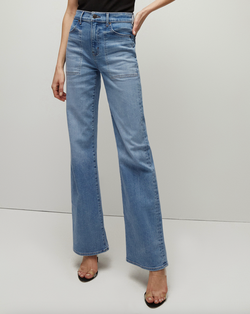 Meet the Crosbie, the elongating high-rise, wide-leg pant. Made in LA in premium stretch cotton from Japan and featuring front patch pockets and our signature V-shape belt loop at the back, this VB favorite is as versatile as it gets.