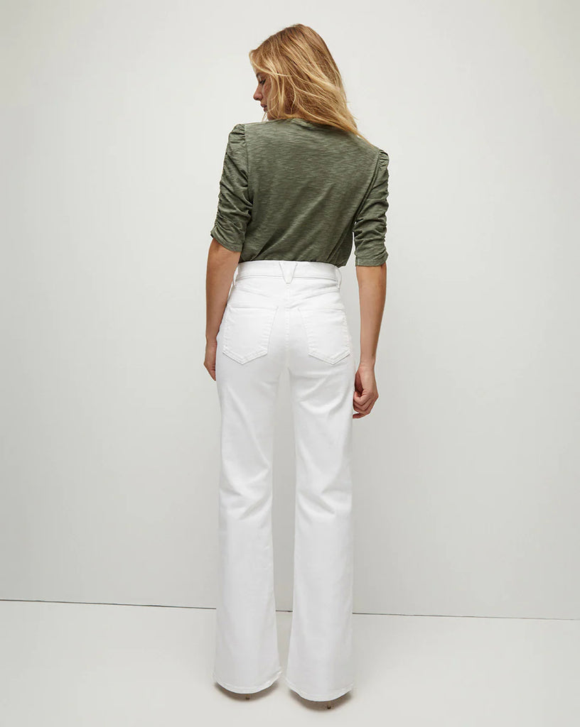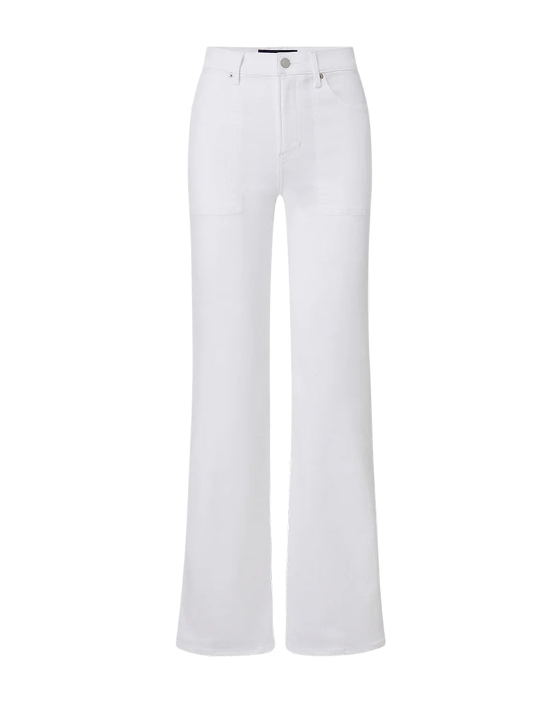 Updated in clean white, the elongating Crosbie jeans feature a flattering high-rise, patch pockets and wide-leg silhouette that is forever chic. We love pairing this sophisticated pair with a simple top and platform heels.
