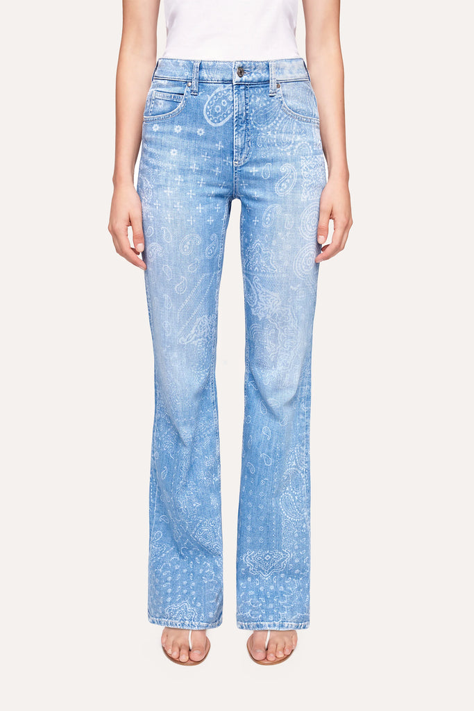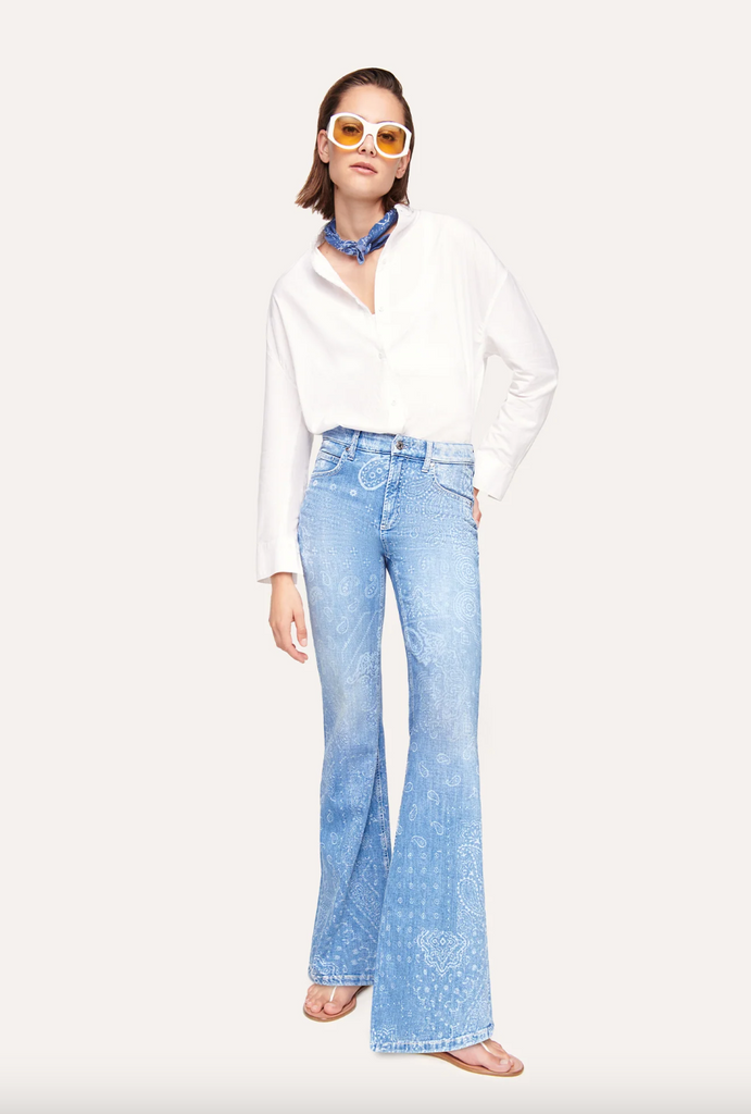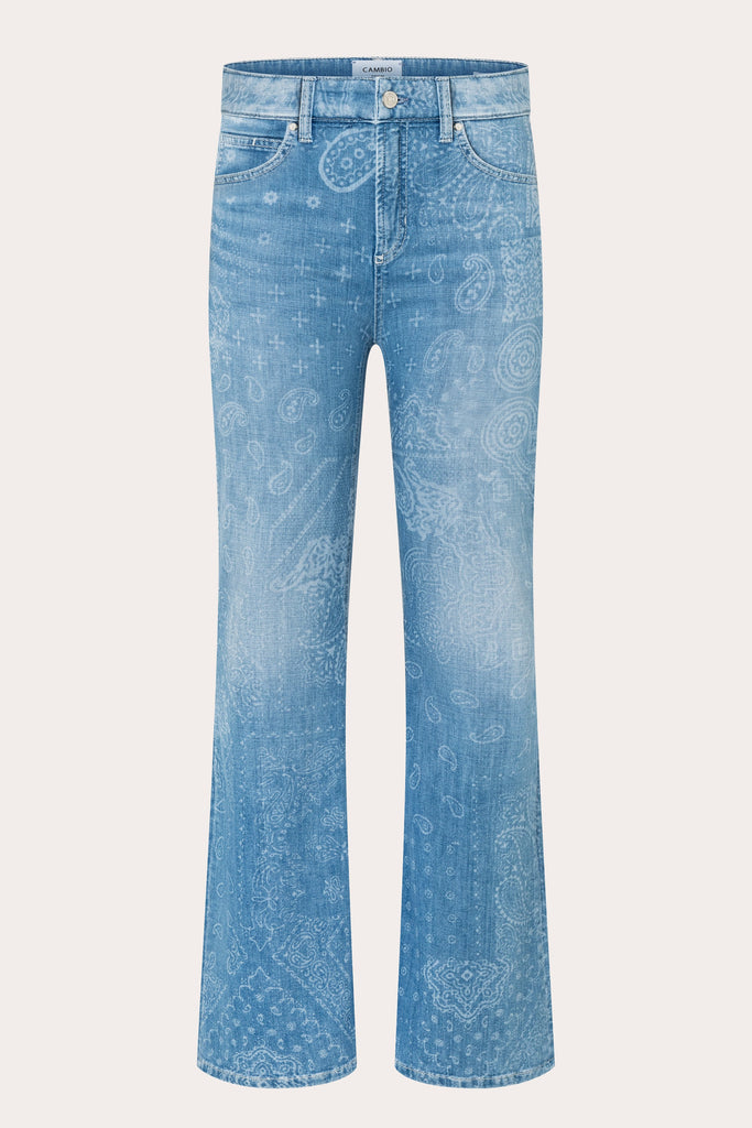 Flared denim Fabienne in full length. Thanks to the modern, flared silhouette and the unusual paisley pattern, the jeans are the perfect basis for fashionably informed looks. Comfort Stretch gives you maximum comfort.