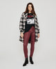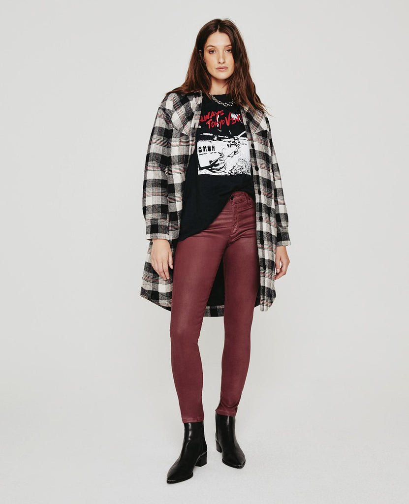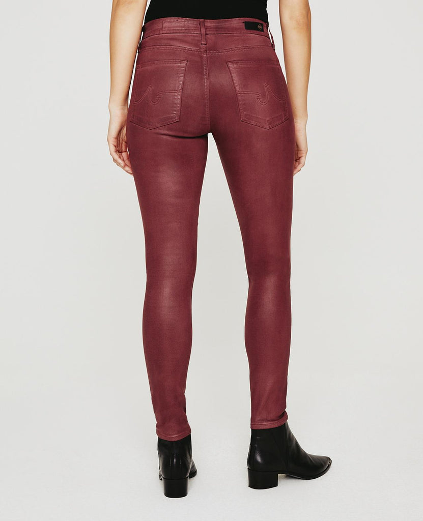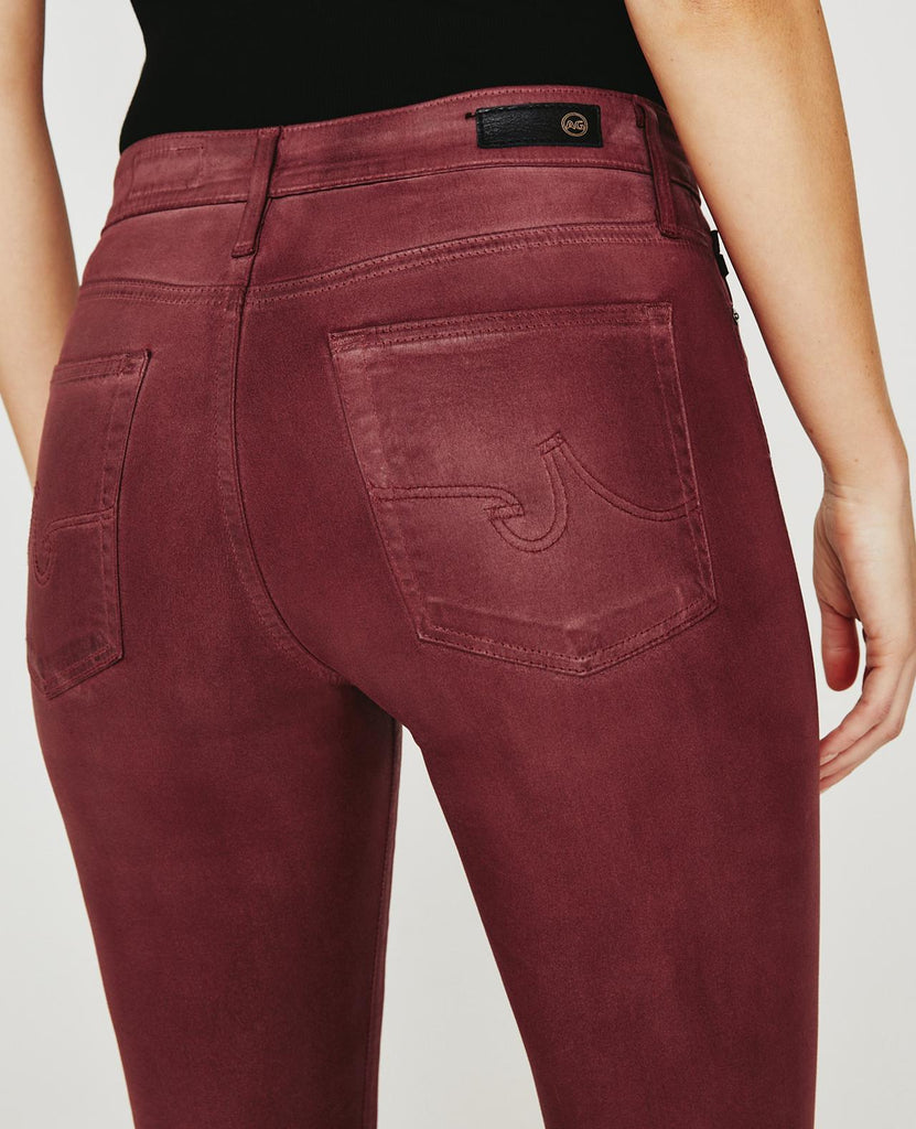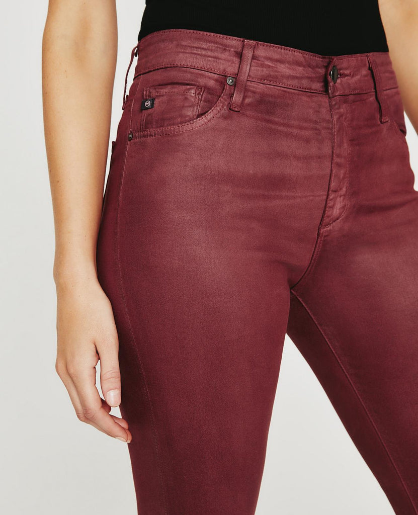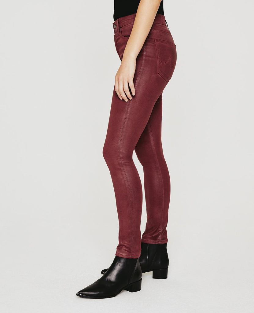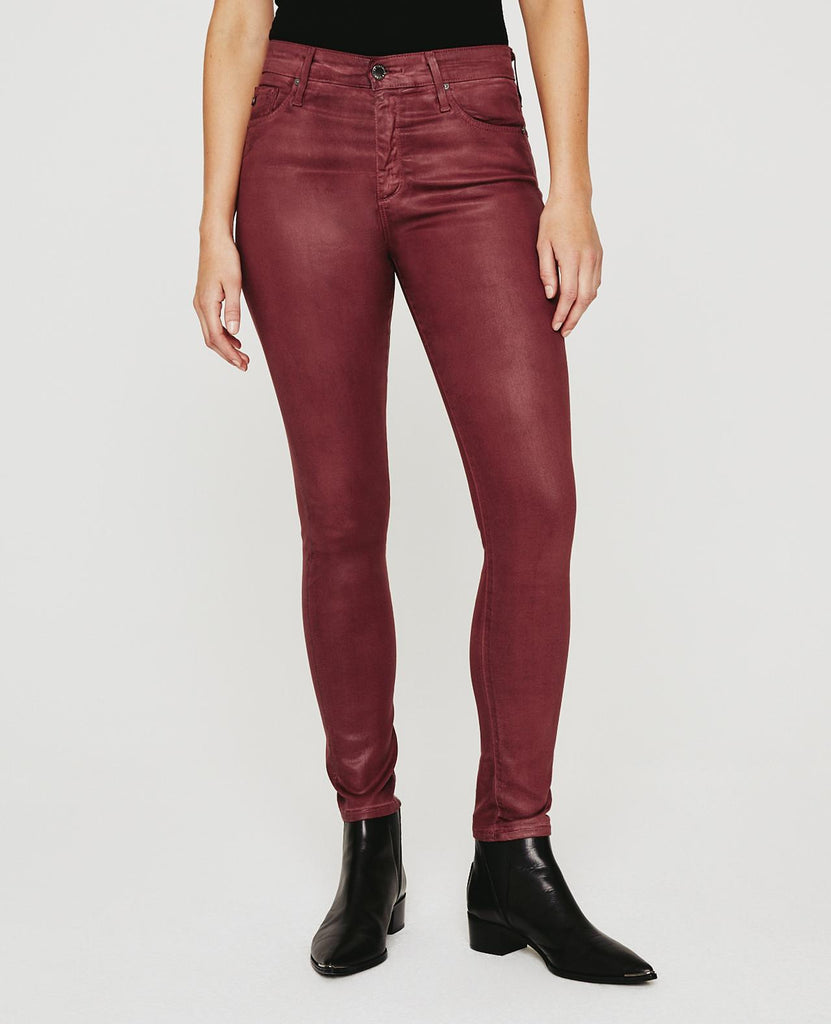 The Farrah Ankle skinny has a streamlined fit and a sleek feel, crafted from our 7.8 oz. Luscious Super Stretch Sateen with a leatherette coating. Offered in a deep red shade, the style is cut with a flattering high-rise waist and cropped ankle length. It's got powerful stretch for a comfortable, formfitting silhouette that holds its shape.