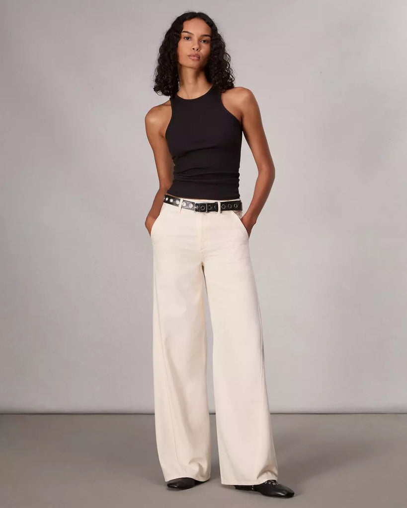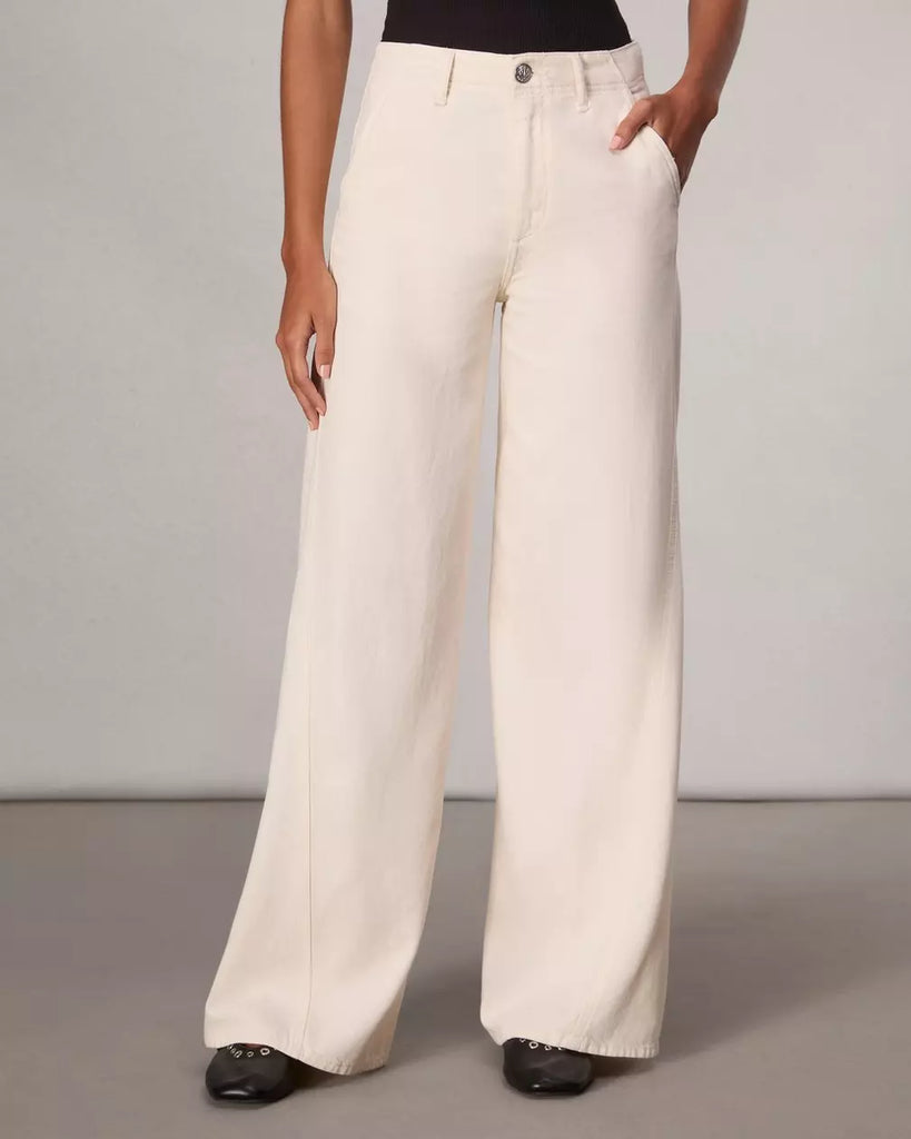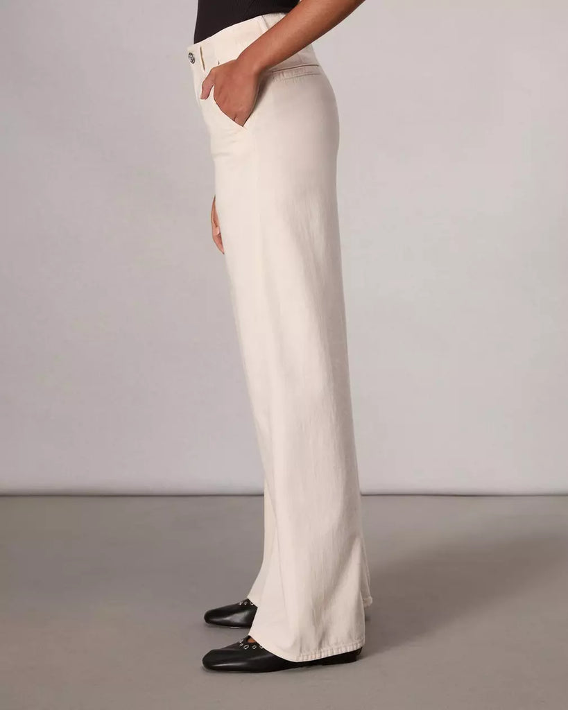 The Tailored Sofie. A dressier version of our beloved high-rise, wide-leg jeans with front pockets at the sides and back welt pockets. Crafted from our Featherweight denim that's supremely soft and super light, with an easy drape. In Ecru, a cream hue.