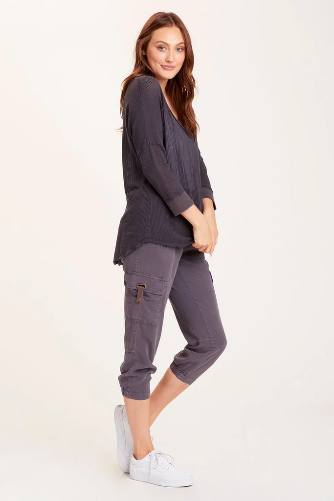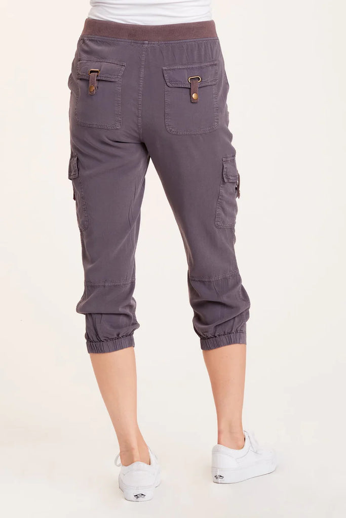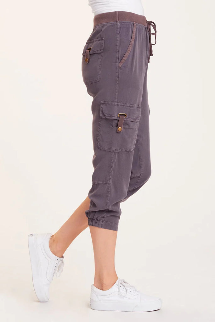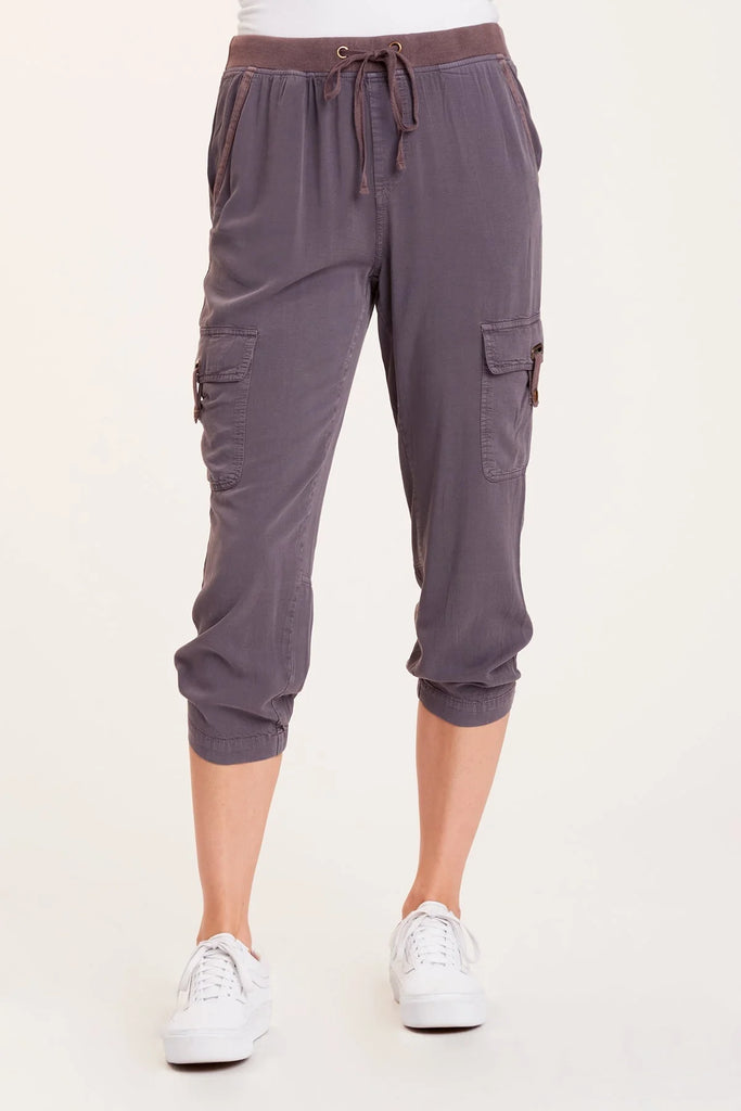 Sporting some super cute cargo pockets, this partially banded crop has front and back pockets along with a pull-on waist with a drawstring.
