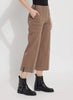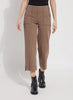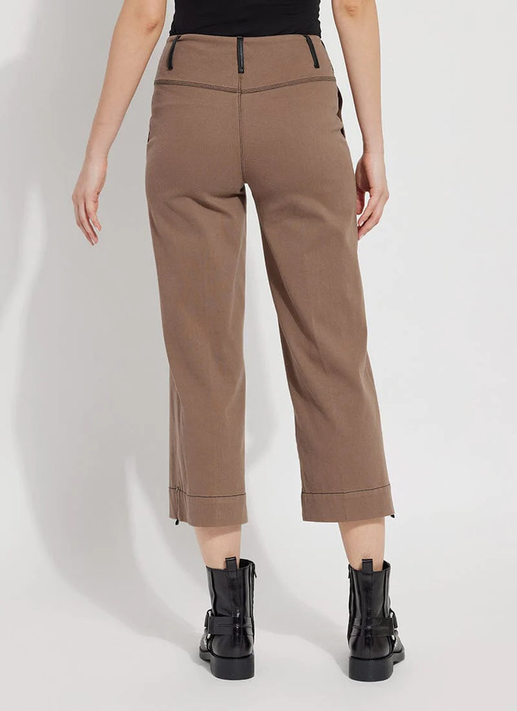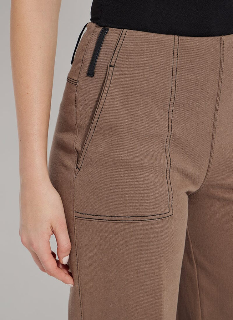 The pull-on Frances Wide Leg Crop, crafted from 4-way stretch Garment Dyed Knit Denim, showcases a concealed patented waistband, flat front with wide topstitching, back yoke, and Vegan Leather loops with gunmetal studs located on the outside bottom of each leg. Partner these wide-legged crops with our Connie Slim Button Down.