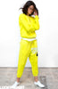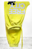 Unisex SUPERVINTAGE POCKET sweatpant in yellow with custom sunfade dye process (highs and lows), “FREECITYLARGE” print in gray, and black "FREECITYDOVE." drawstring at waist, slant hip pockets and back patch pocket.
