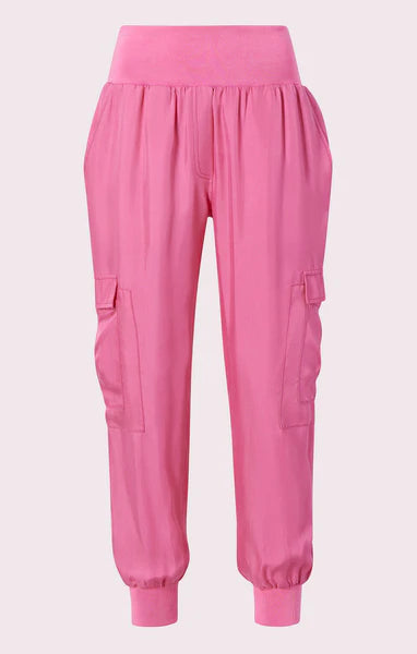 Cupro cargo jogger with elasticized waist.