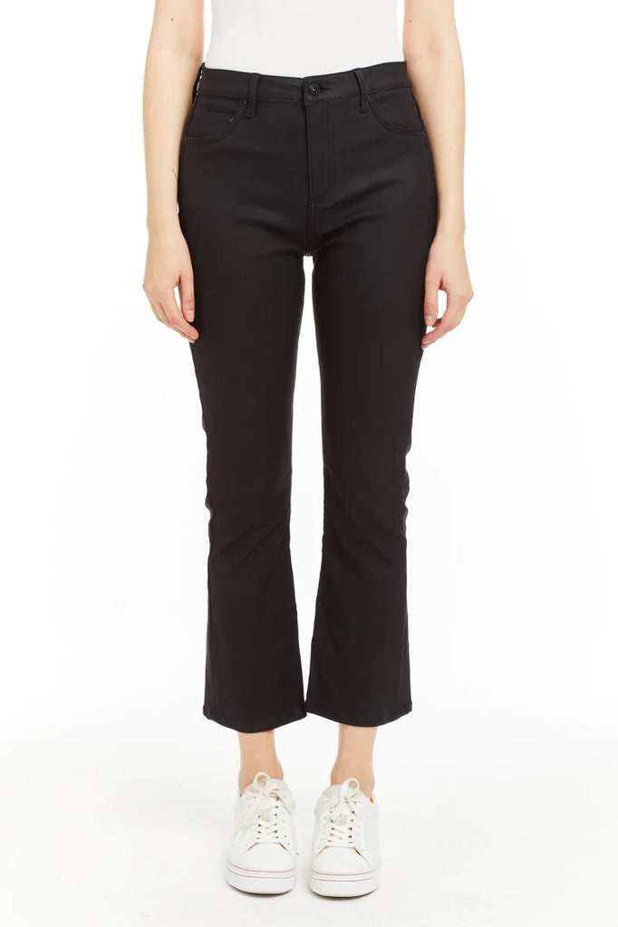 Turn heads in High Rise Coated Ankle Crop Flare jeans - the perfect fusion of bold and trendy. With a touch of attitude and a dash of flair, these pants are your ticket to a fashion-forward statement.