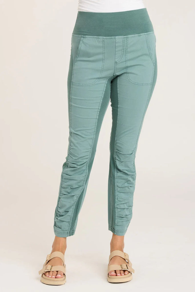 Picture this: high-waisted legging, ruched leg panels, front pockets, jersey inserts from hip to hem and in signature poplin to boot! What. Do. We. Have. Here!? Introducing Penny; she'll be your new best friend.