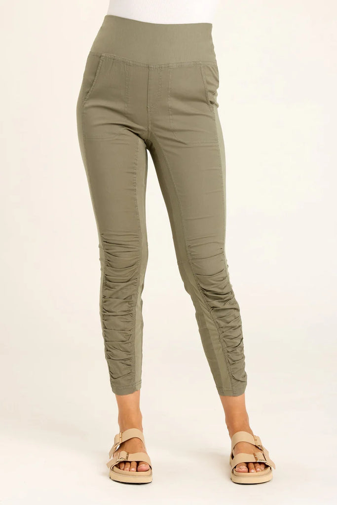 Picture this: high-waisted legging, ruched leg panels, front pockets, jersey inserts from hip to hem and in signature poplin to boot! What. Do. We. Have. Here!? Introducing Penny; she'll be your new best friend.