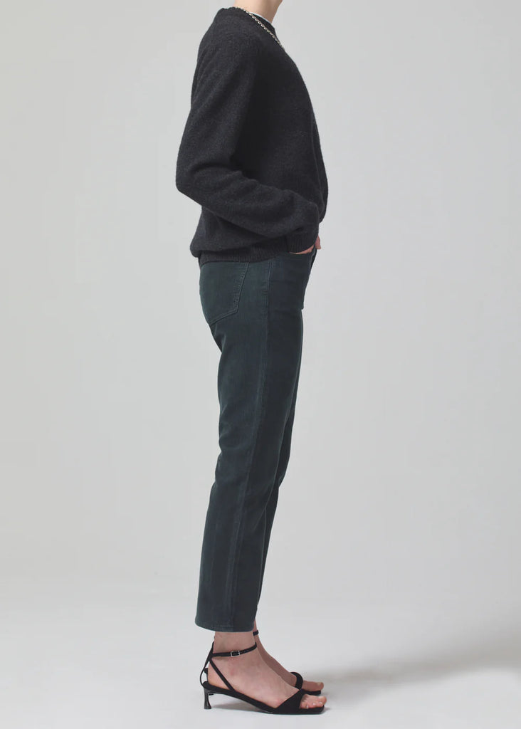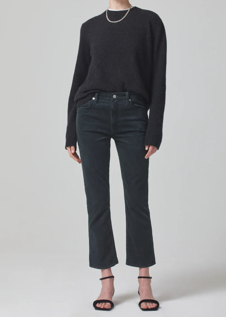 Your new go-to. The Isola features a flattering mid rise with a close fit through the leg and subtle bootcut flare. This cropped fit hits right above the ankle, making them the perfect pair to show off your shoe of choice. This transitional style is now crafted in our Stretch Corduroy, making the perfect closest staple for the cooler weather.