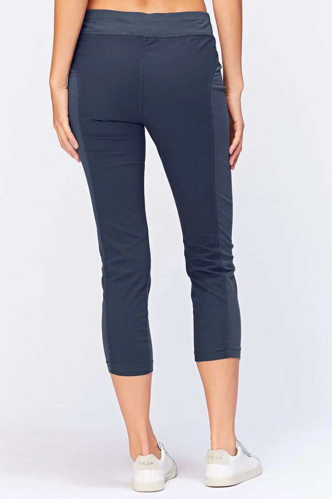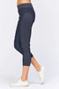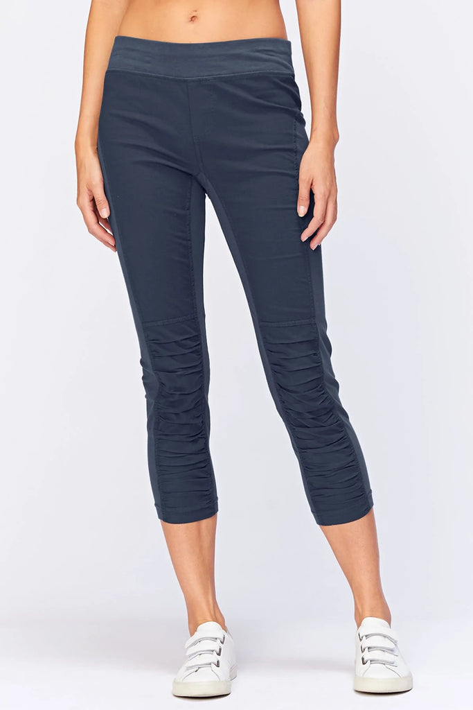 This classic and an all-time favorite legging features a pull-on elastic waistband, jersey side inserts at side leg for an impeccable fit, and rouching at leg bottom.