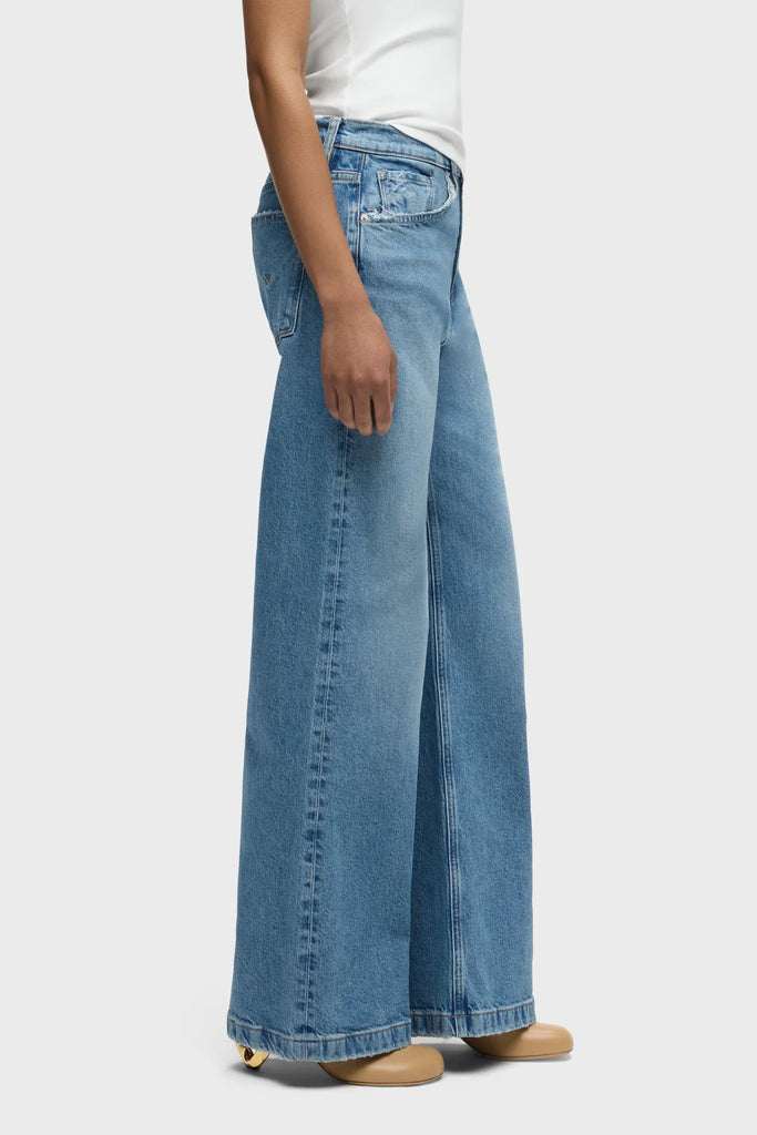 Jodie Loose Fit Wide Leg Jean in a light-blue Goddess is cut for a roomy fit from true comfort stretch denim. Finished with 32" inseam, classic five-pocket styling, grinding along the edges and a clean, finished hem.