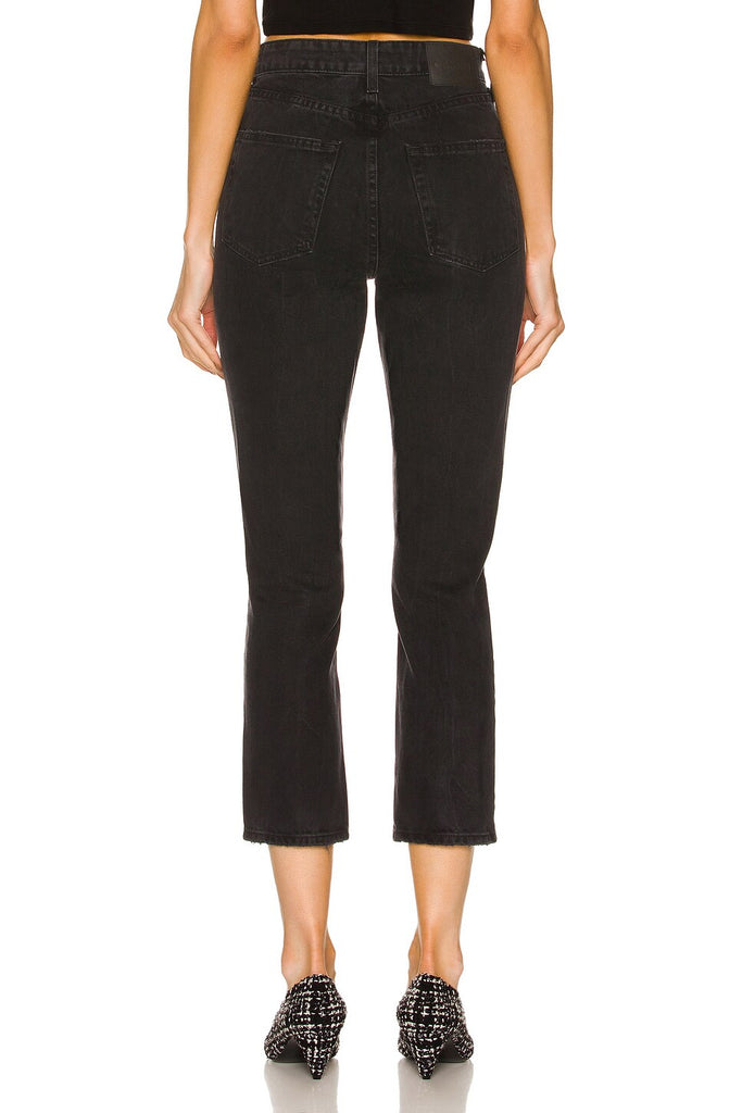 • A classic ridgid fit on a black wash design, the GRLFRND Karolina High Rise Straight Crop jeans serve to offer a little edge to such a classic silhouette. From the subtle faded wash to the light whiskering detail along the pockets and hemline, there's no doubt that this denim will easily become a cult favorite.