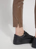 The Katherine Toothpick Skinny is fitted from waist to knee before opening into a skinny, cropped leg. Crafted from 4-way stretch Textured Vegan Leather, the Katherine Toothpick Skinny features a slimming concealed patented waistband, strategically placed back patch pockets and inseam ankle slits with gunmetal studs.