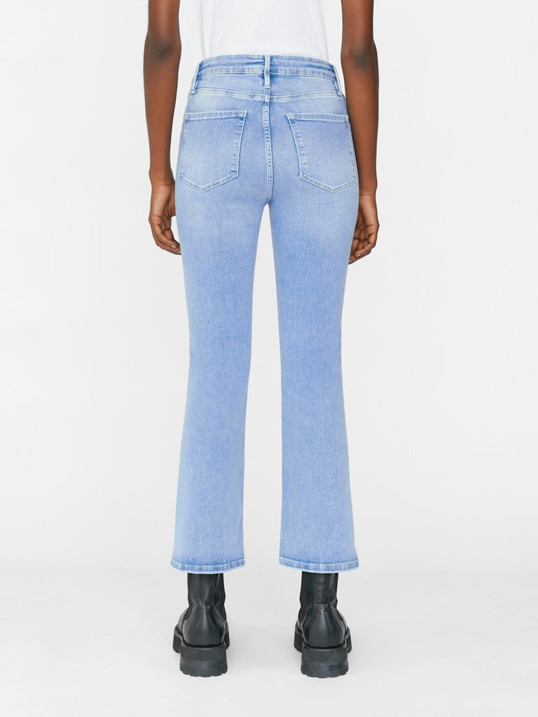 Made from revolutionary adaptable stretch fabric that evolves with your body, Le One Crop Mini Boot in Casper, a light blue indigo wash, comes in three sizes. If you typically wear size 22 to 24, select size 0. If you typically wear size 25 to 29, size 1 will be your best fit. If you typically wear size 30 to 34, choose size 2.