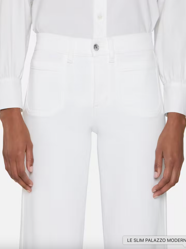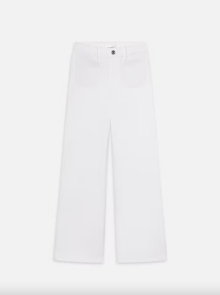 FRAME's best-selling palazzo silhouette, now with chic front pocket details. This pair has the same flattering high rise, fitted hip, and subtle wide-leg flare that hits at the floor. Crafted from a sustainable, ultra stretch cotton blend for soft and comfortable wear.