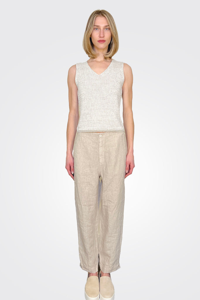 Linen Straight Leg Tapered Trousers - Sand