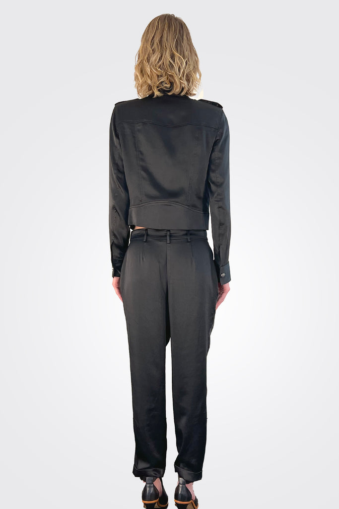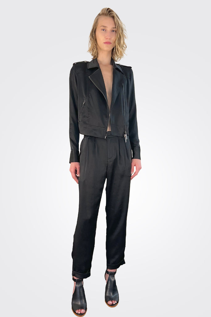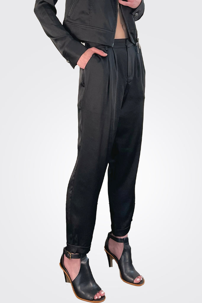 Cuffing and cropping adds a laid-back vibe to these matte satin pants.