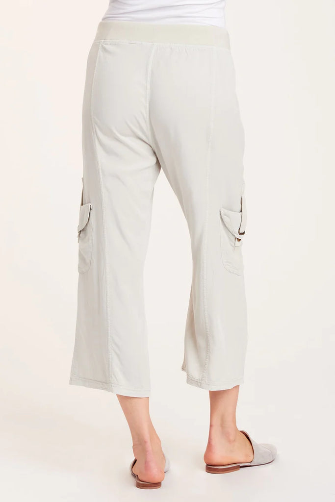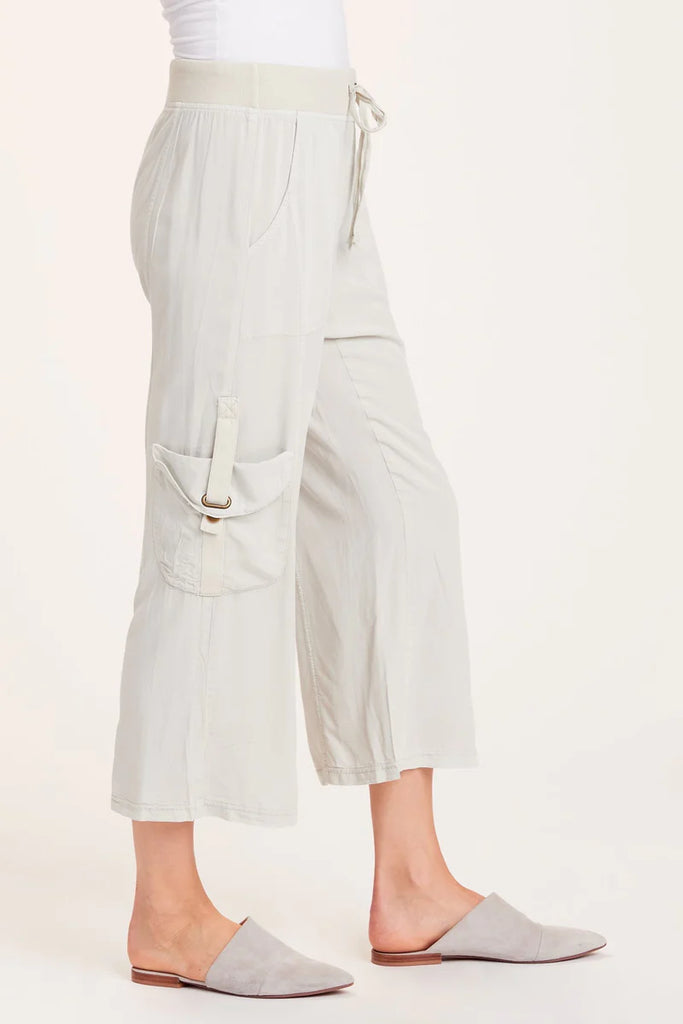 You know those cool oversized cargo pockets with the twill tape that pulls all the way through a chunky oval grommet just to snap the flap down? Oh yeah, those cool pockets! Guess what? Mazu has 2 of them!!! Slip into this baby with its pull-on waist and wide leg greatness.