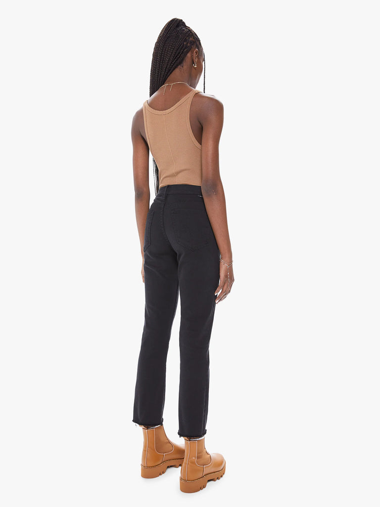 Pitch perfect. A mid-rise straight leg with an ankle-length inseam and a raw, frayed hem. Cut from a recycled cotton-blend denim with a touch of stretch, Pitch is a deep black wash with a soft yet sturdy feel.