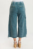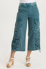 Corded drawstring cinches the front of this ruched wide-leg crop. With exaggerated cargo pockets paired with tradtional front and back pockets, there is not much you can't love about this one!