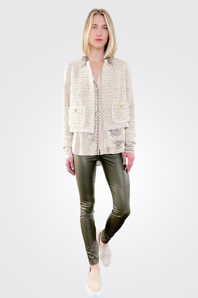 A high-rise skinny pant with a cropped leg. Crafted from a black vegan leather, it's finished with an elastic waistband. Instant icon. Ultimate comfort.