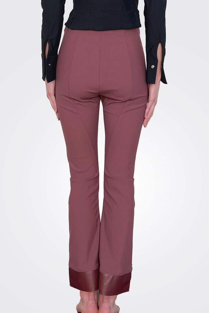 - Cropped flare with vegan leather step hem trim