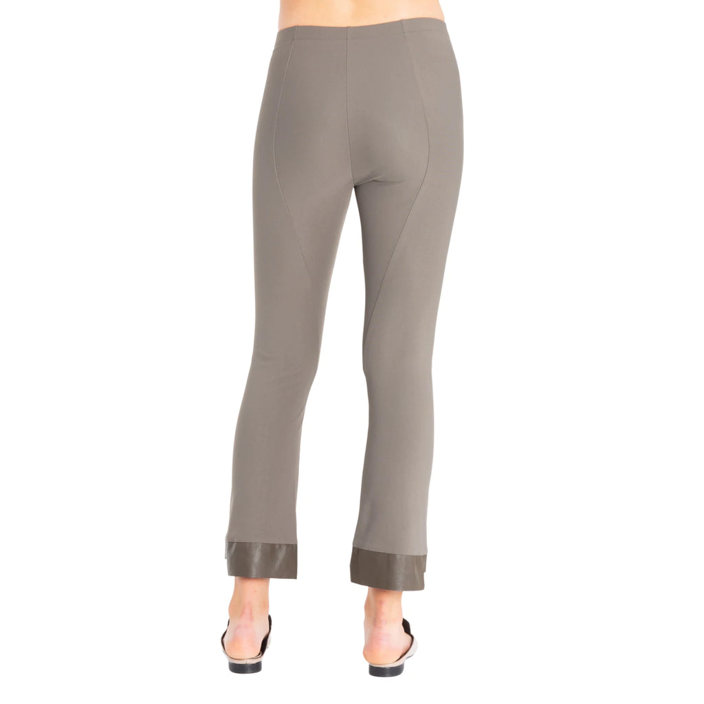 - Cropped flare with vegan leather step hem trim