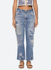 The Oli denim mid-rise style jeans feature a frayed hemline and detailed embroidery throughout.