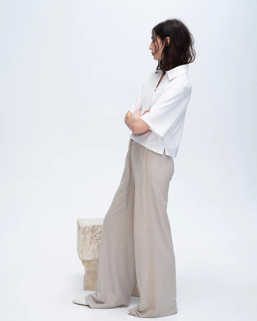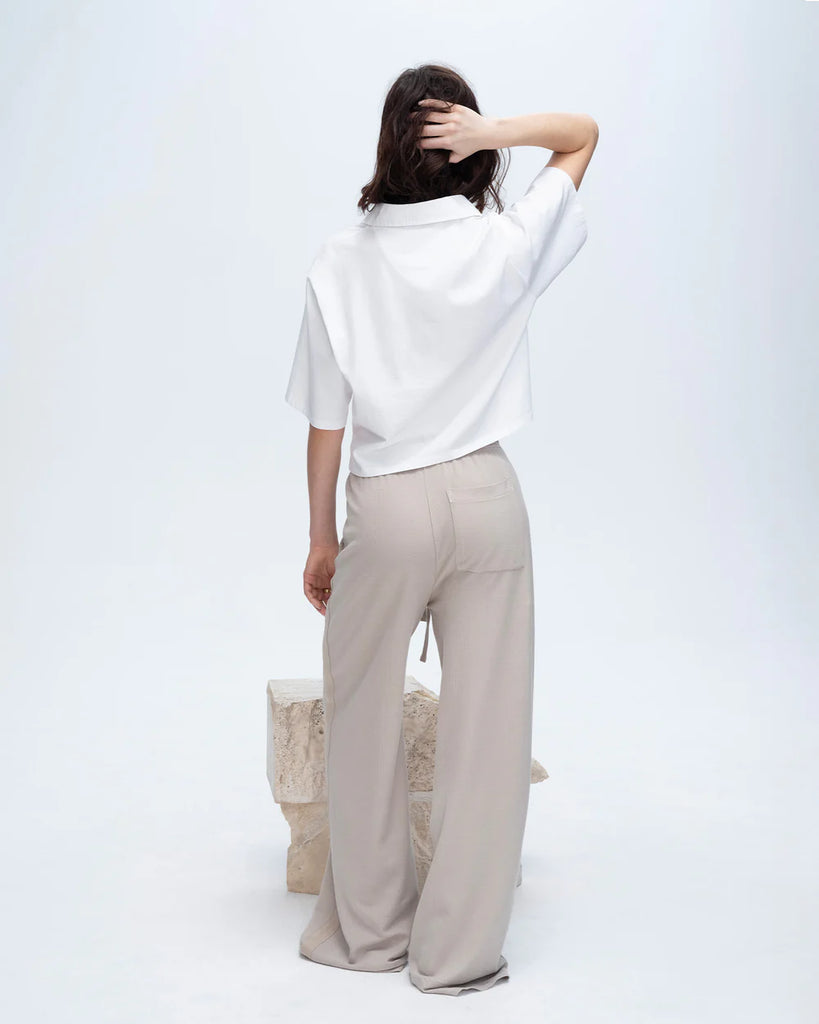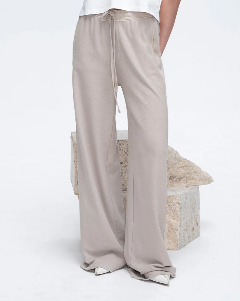 Pique Mixed Media Wide Leg Pants - Sandy Beige