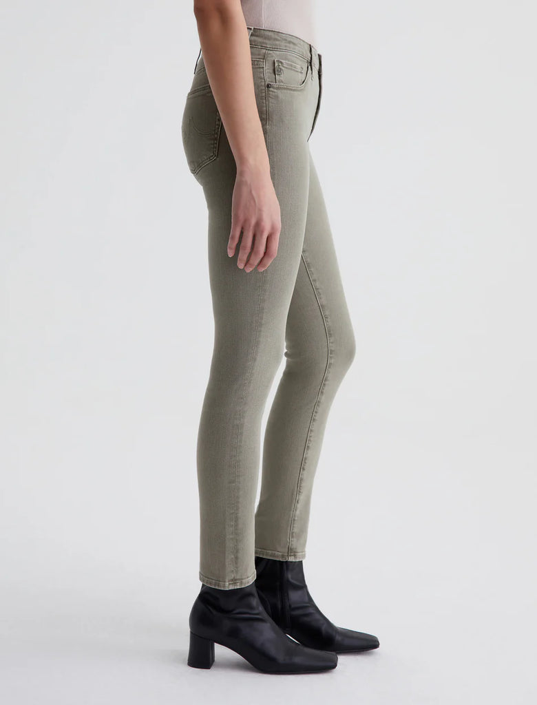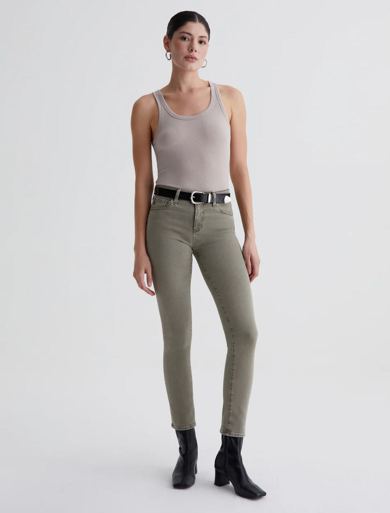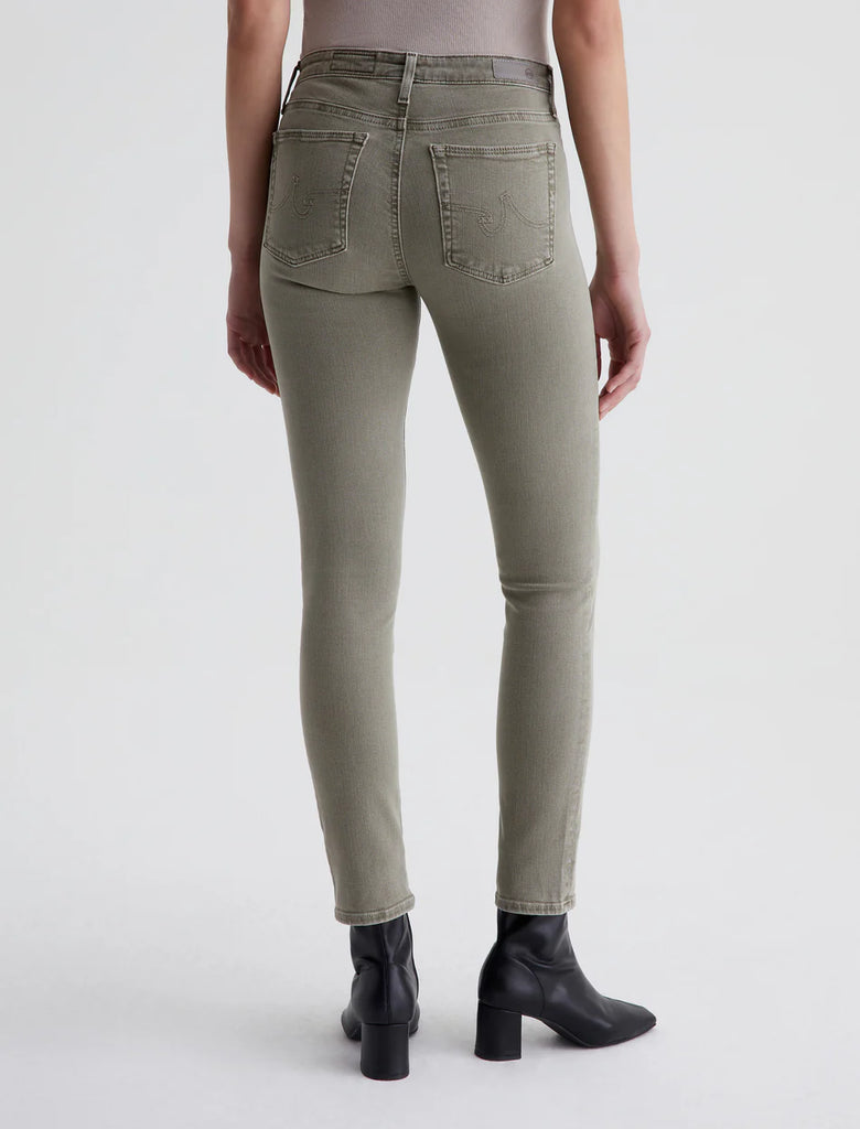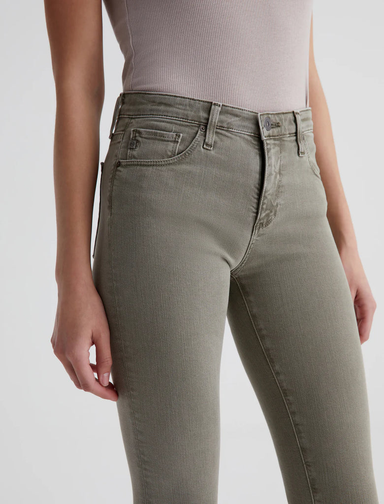 The Prima Ankle is a mid-rise cigarette jean with a fitted silhouette through the hips, slight tapering at the legs, and cropped hems that sit right at the ankle. Part of our exclusive AG Cloud Soft Denim™ offering, these women’s jeans are crafted from 9.7 oz. Hyper-Soft Stretch Denim in a light, faded green shade. This left-hand twill fabric has special construction that allows the yarns to gently relax and untwist for a luxe, supple feel. It's designed to get softer with every wear.