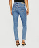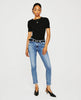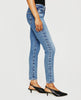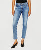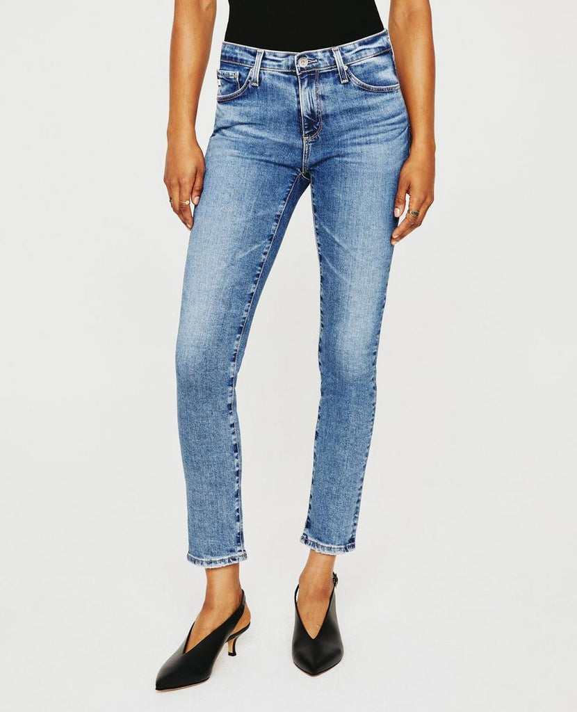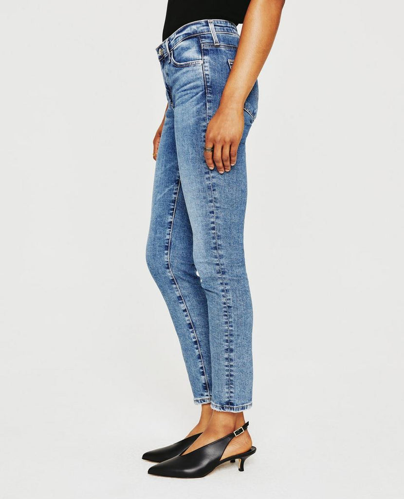 Prima Ankle is a mid-rise cigarette jean for women, featured here in a medium indigo wash with fading, whiskering, and worn edges. The style has a fitted shape through the hips, slight tapering at the leg, and a cropped length that hits just above the ankle. This women’s jean is designed in 10 oz. Rouge Advance Stretch Denim for a flattering fit and comfortable feel.