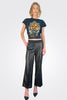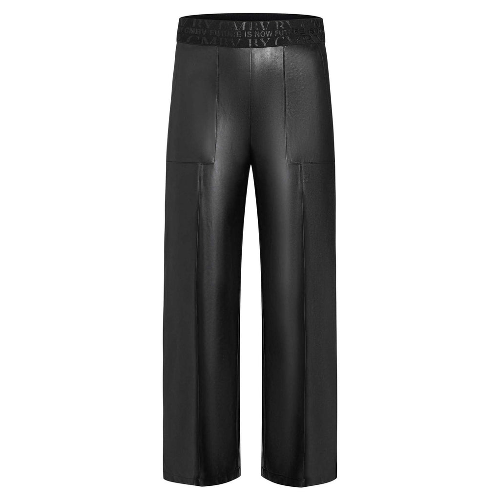 Trendy casual pants from Cambio with a comfortable fit. Elastic fiber mix in a finely embossed imitation leather, with an elastic waistband, piped pockets, straight, wide legs, decorative topstitching and a finely shiny plain-colored finish