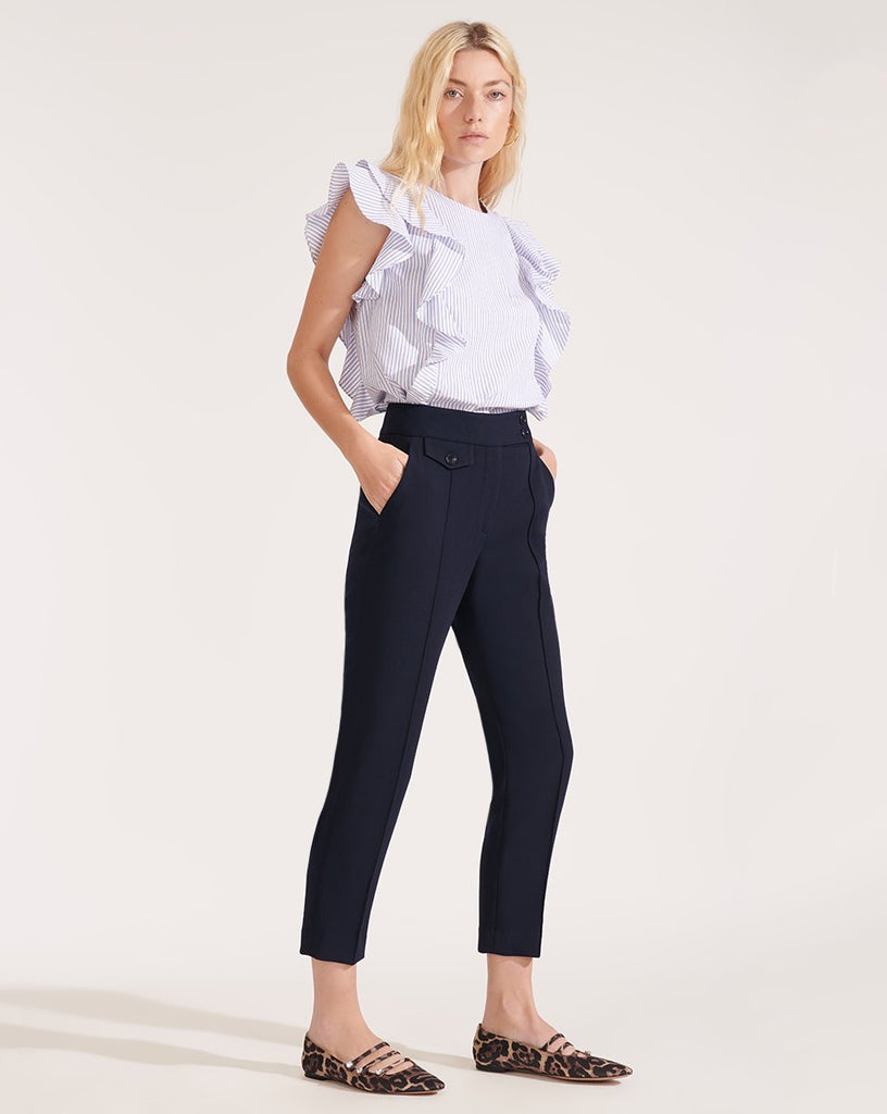 A slim leg and streamlined silhouette make our Renzo pants a go-to pair for the office. Wear with a feminine blouse and statement heels for a chic, uptown look.