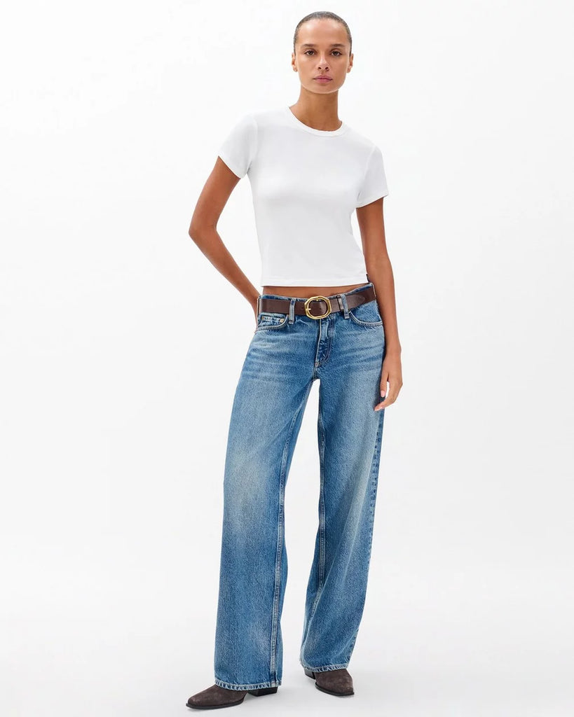 The Saige. Low-rise is back. Our new relaxed, straight leg jeans are effortlessly laid back and unapologetically of the moment. Off-duty cool without even trying. Crafted from Lightweight Rigid non-stretch denim that provides structure, but breaks in over time for a soft and comfortable feel. In Echo, a light-medium indigo wash with the perfect vintage-inspired wash.