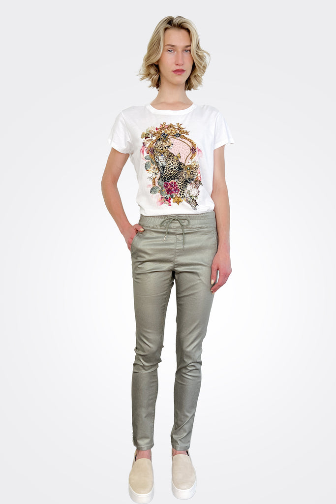 Shely Style with a Tie. Sage Original Print. 98% cotton 2% Lycra. Machine washable. Does not Wrinkle or Fade. Comfortable, Stylish, Very Flattering. Wear with Sneakers, Sandals, Booties, Heels. Wear it Casual or Dressy for Evening. Try them and you will see why these pants have been the #1 selling item in boutiques all around the U.S. Inseam: 30", Rise: 11".
