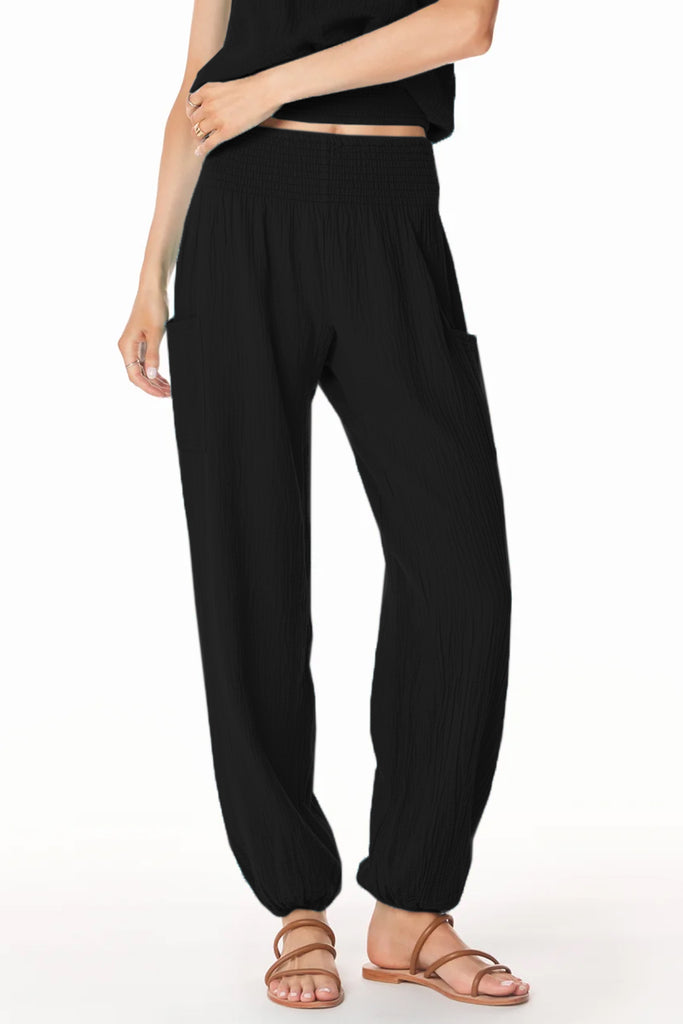 Smocked Beach Pant w/ Pockets - Black