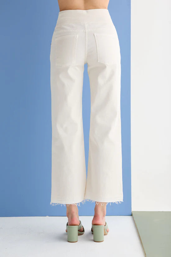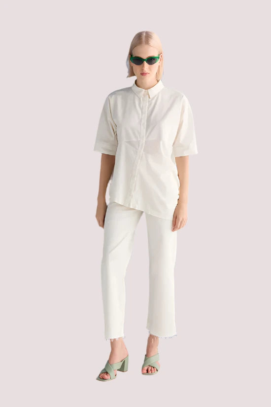 Straight leg trousers.
