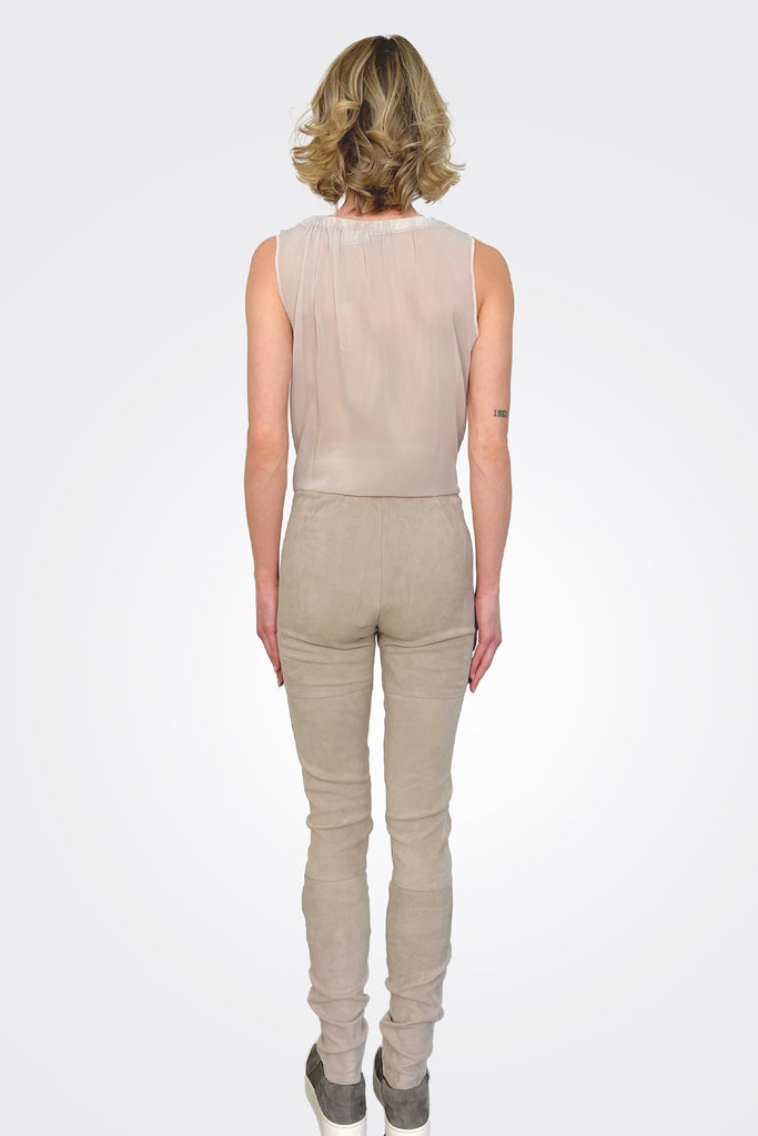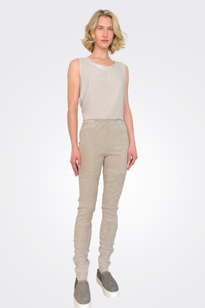Elevate your style with Suede Leggings, meticulously crafted from 100% goat leather suede.