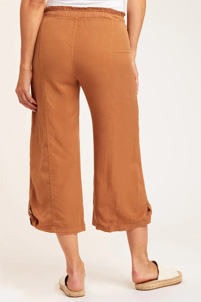 A paperbag waist paired with brass details and a tabbed hem are all the rage in this culotte.