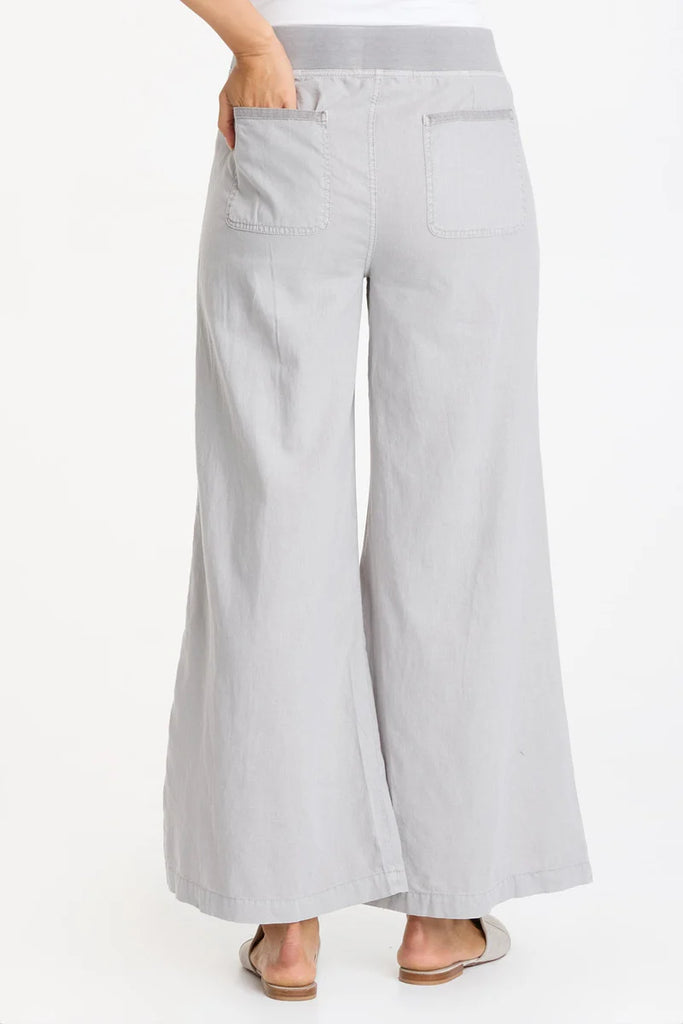 The wide-leg look comes back in full swing in Cotton Linen, featuring pleats at the center leg, contrasting jersey, and an elastic pull-on high waistband for ultimate coverage and comfort.