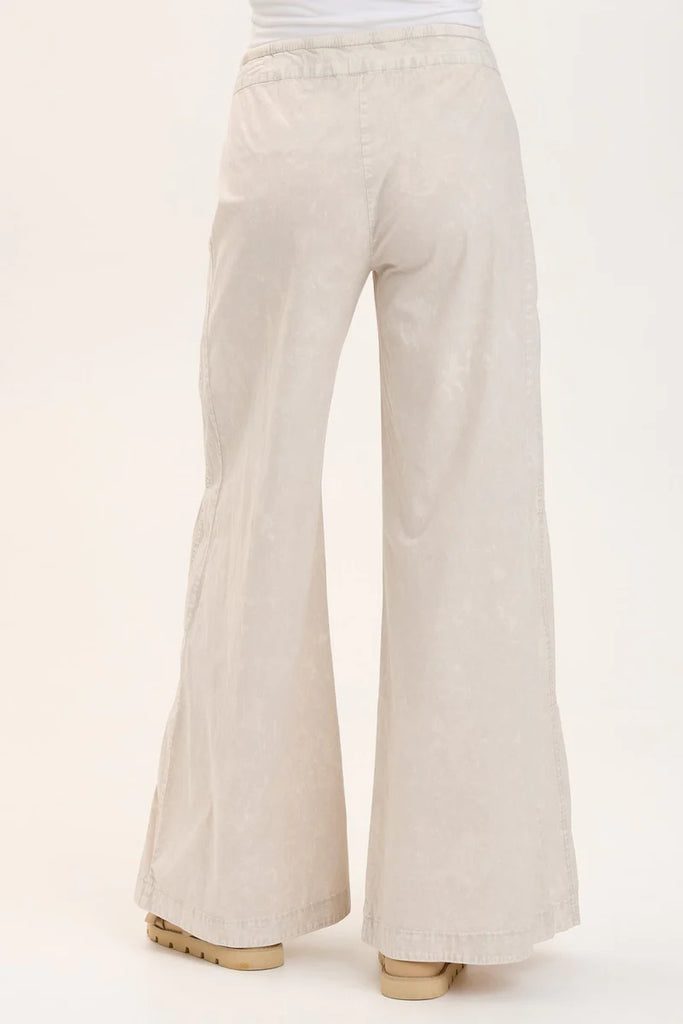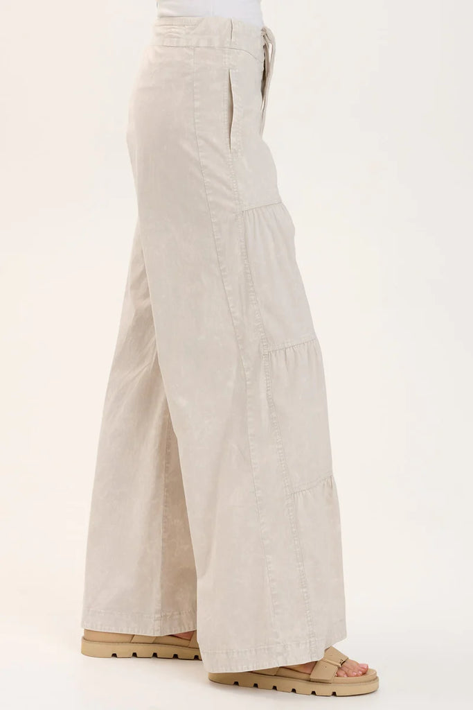 It's back by popular demand: our signature terraced ruched wide leg pant, with a flat drawstring waist, back elastic, zip fly and side seam pockets.