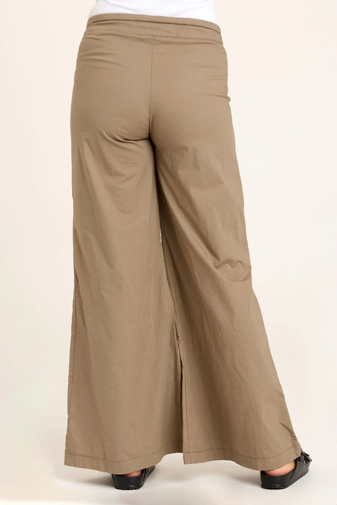 It's back by popular demand: our signature terraced ruched wide leg pant, with a flat drawstring waist, back elastic, zip fly and side seam pockets.