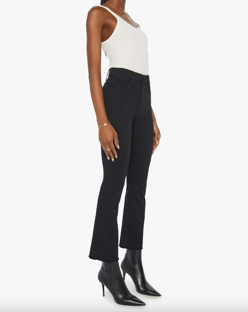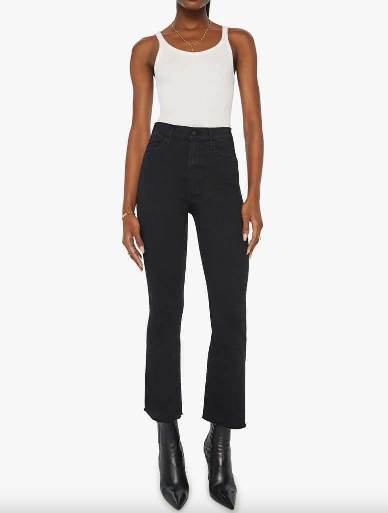 Plead the fifth. These bestselling high-waist flare jeans have an ankle-length inseam and a raw hem. Made from stretch denim, Not Guilty is our bestselling black wash.