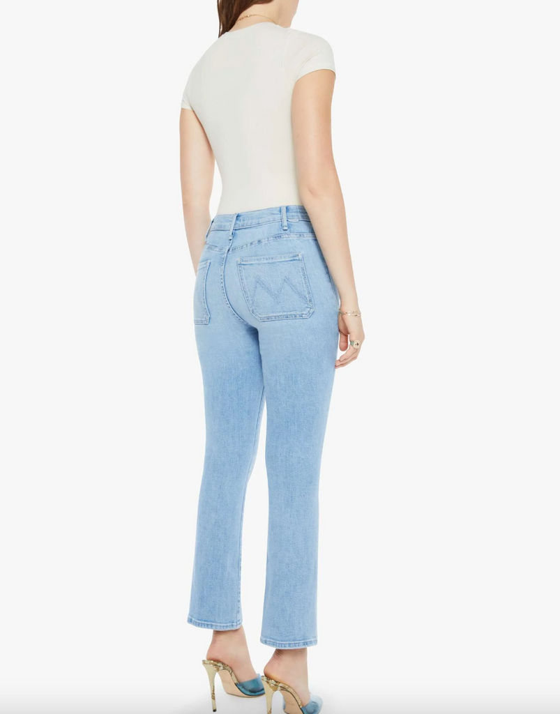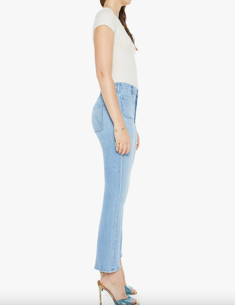Ride the airwaves. This high-rise flare is designed with patch pockets, an ankle-length inseam and a clean hem. Made from stretch denim, Tune In, Tune Out is a light blue with subtle whiskering and fading throughout.