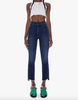 Outta here. This iconic high-waisted bootcut hits at the ankle with a frayed step-hem. Made from stretch denim, Movin' On Up is a dark blue wash with subtle fading and whiskering.