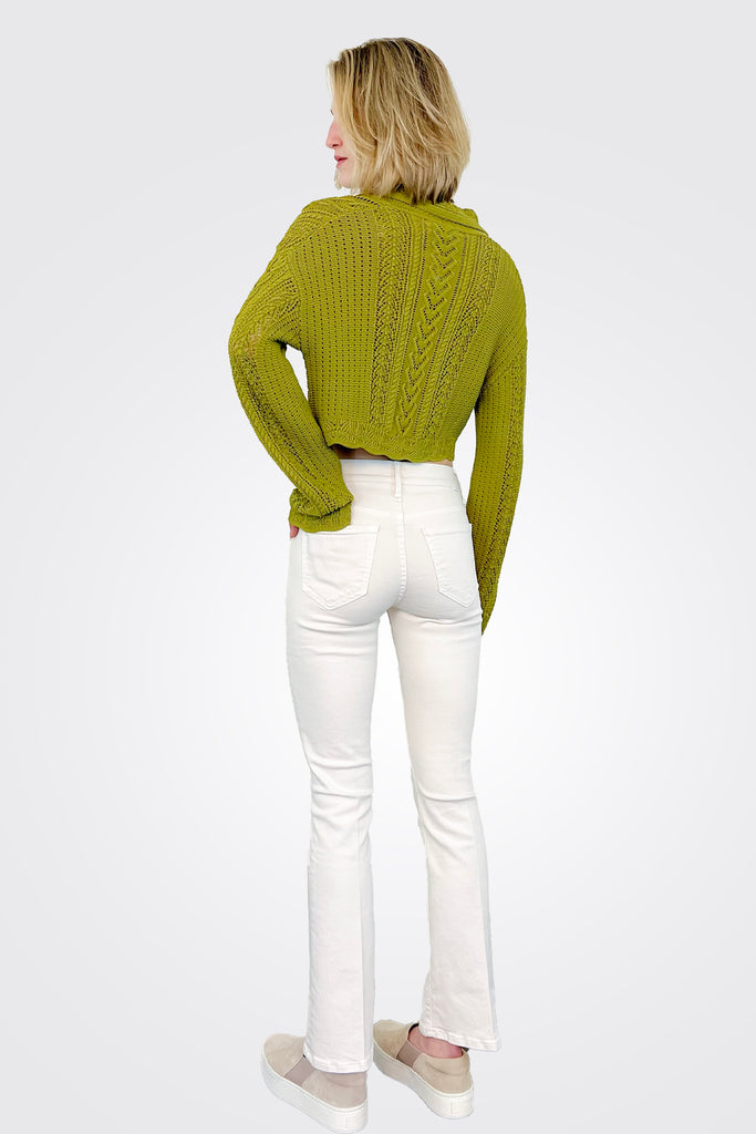This iconic high-rise bootcut has a 28.25-inch inseam and a clean hem. Cut from stretch fabric, the pants are designed in a light khaki cream.
