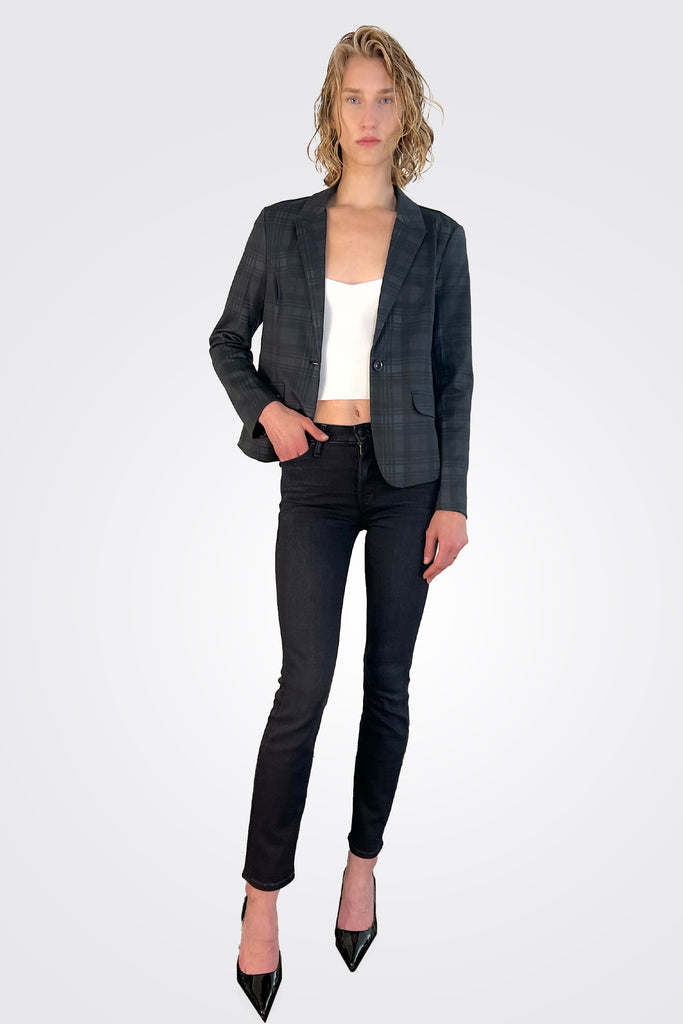 Dive in. Our most popular mid-rise straight leg hits at the ankle with a clean hem. Cut from stretch denim, Deep End is a washed dark black hue with black hardware and super subtle fading and whiskering.