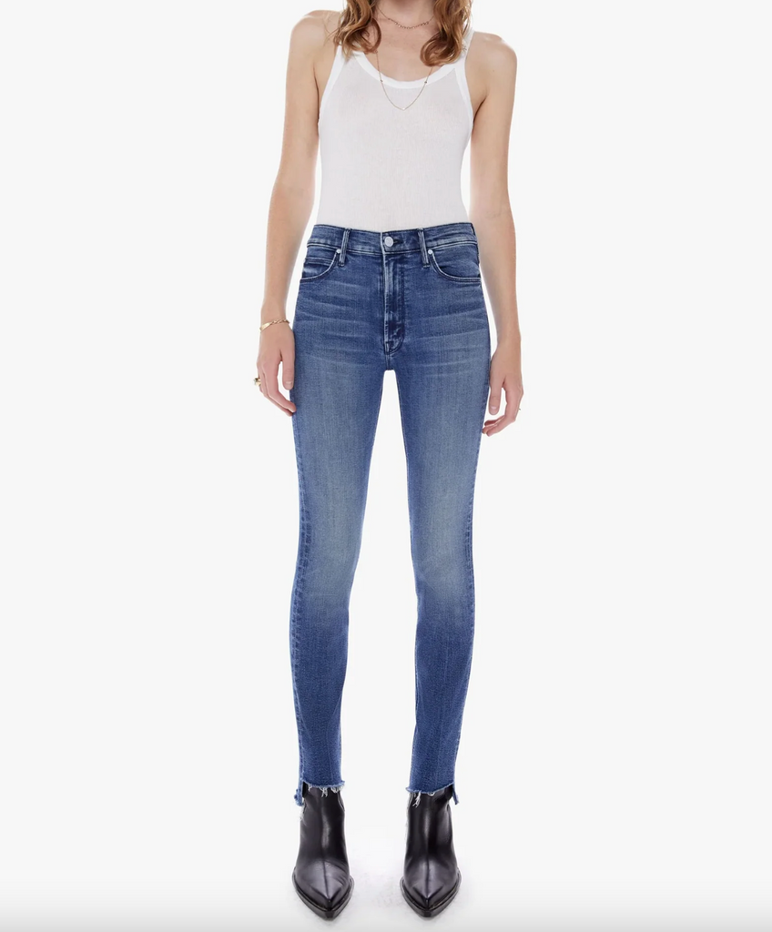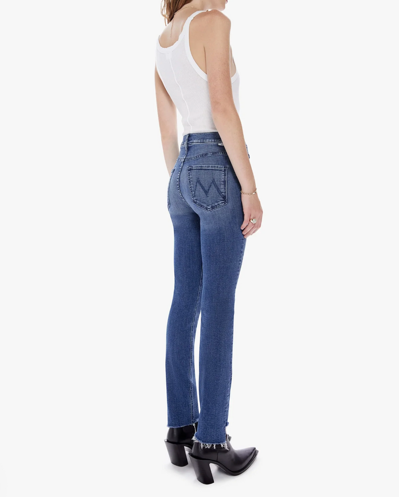 Hey mister DJ. Our most popular mid-rise jean has a straight leg with an ankle-length inseam and a frayed step hem. Made from denim with a touch of stretch, Mix Tape is a dark blue wash with subtle fading and whiskering.